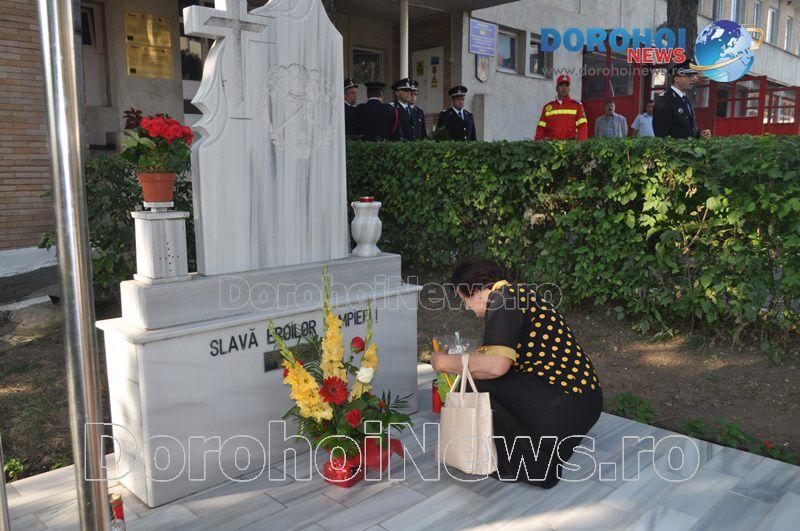 Ziua Pompierilor din România, sărbătorită în fiecare an pe 13 septembrie, a debutat, în jurul orei 09:00, la Dorohoi, cu o ceremonie religioasă, urmată de o depunere de coroane la monumentul din curtea Detașamentului de Pompieri Dorohoi.