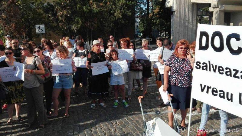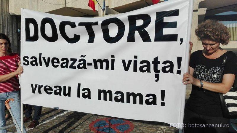 Femeile au afișat pancarte pe care se pot citi mesaje precum: „Nepăsarea voastră este durerea noastră”, „Nu ne mai omorâţi copiii cu ignoranţa voastră”, „Doctore, salvează-mi viaţa, vreau la mama”, „Stop lipsei de informare a pacientelor din Maternitatea Botoşani”. Protestatarii au adus şi un căruţ în care nu stă un copil, ci un sicriu alb.