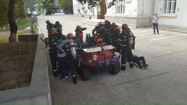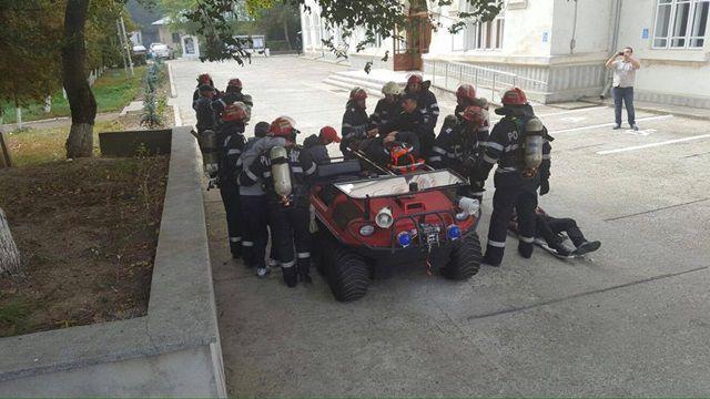 Concomitent cu activităţile derulate la Şendriceni, s-a desfăşurat un exerciţiu pentru înlăturarea efectelor unui incendiu produs la centrala termică de la subsolul Judecătoriei Botoşani.