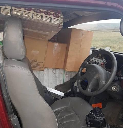 În urma cercetărilor efectuate, lucrătorii noştri au identificat conducătorul auto al primului autoturism ca fiind Lucian G., de 27 de ani, domiciliat în judeţul Botoşani. În continuarea acţiunii, a fost descoperit abandonat cel de-al doilea autoturism, care era încărcat cu aproximativ 20.000 pachete țigări de contrabandă.
