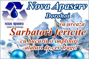 „Nova ApaServ transmite mulțumirile pentru colaborarea din anul 2016 Primăriei Dorohoi, Consiliului Local și în special primarului Dorin Alexandrescu, pentru înțelegerea acordată. Spun aceste lucruri deoarece au fost momente în acest an, de disconfort în furnizarea serviciilor de apă-canal atât pentru cetățeni cât și pentru administrația locală. Totodată le mulțiumim tuturor dorohoienilor pentru înțelegerea acordată și le transmit un An Nou Fericit și La Mulți Ani!”, a declarat în exclusivitate pentru Dorohoi News, ing. Nicu Crețu, șeful Unității de Exploatare Județeană a Nova ApaServ Botoșani. (Andrei B.)