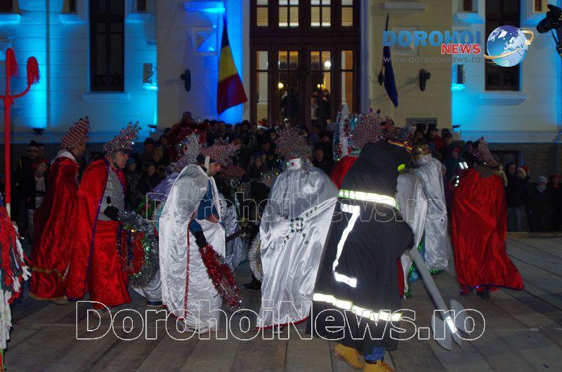 Frumoși constumați, cu o coregrafie bine pregătită și urături personalizate, grupurile organizate au încântat publicul dorohoian și oficialitățile locale cu datinile și obiceiurile specifice momentului și zonei.