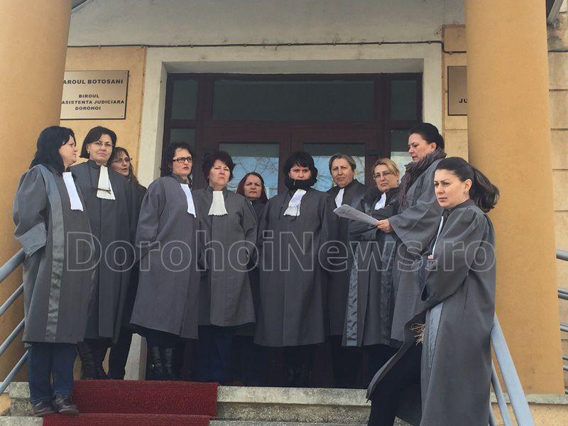 Personalul auxiliar şi cel conex din cadrul Judecătoriei Dorohoi, au întrerupt activitatea astăzi, 27.01.2017, între orele 13:00-14:00, în cadrul unui protest spontan, exprimându-şi astfel nemulţumirea faţă de: