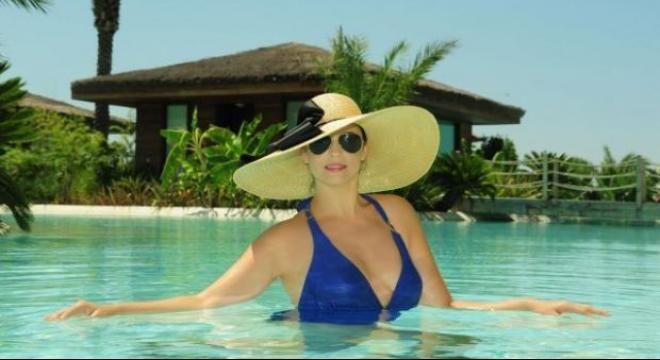Vedeta, aflată în vacanţă sa împreună cu familia din Turcia, apare în piscină, îmbrăcată în costum de baie şi purtând o pălărie. Ea le-a mărturisit fanilor că a fost plăcut impresionată de resortul all-inclusive din Belek-Antalya în care s-a cazat.