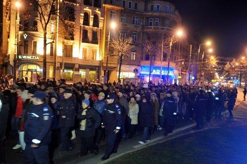Nu s-au inregistrat incidente in timpul manifestatiei. Un singur barbat, care nu facea insa parte din grupul demonstrantilor, a fost dus la sectia 17, dupa ce a incercat sa treaca de cordonul format de fortele de ordine. Protestul nu a fost insa autorizat si reprezentantii jandarmeriei au anuntat ca urmeaza sa ii identifice si sa ii sanctioneze pe cei care au initiat actiunea si au instigat la violenta.
