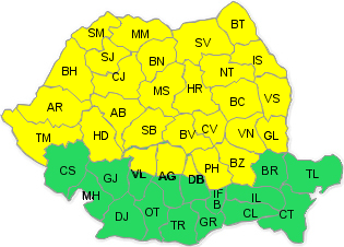 Administraţia Naţională de Meteorologie a transmis o avertizare meteorologică de tip COD GALBEN de instabilitate atmosferică și ploi însemnate cantitativ. Avertizarea este valabilă de vineri, 11 iulie, în intervalul 09:00 – 23:00.