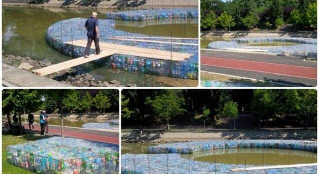 Dupa ce structura de PET-uri va fi gata, vor fi montate balustrade si pe deasupra vor fi montati paleti, mai ales daca ne gandim ca pe deasupra vor trece zeci de persoane concomitent. Organizatorii ne asigura ca podul va fi suficient de solid incat sa sustina o greutate de pana la 70 de tone.