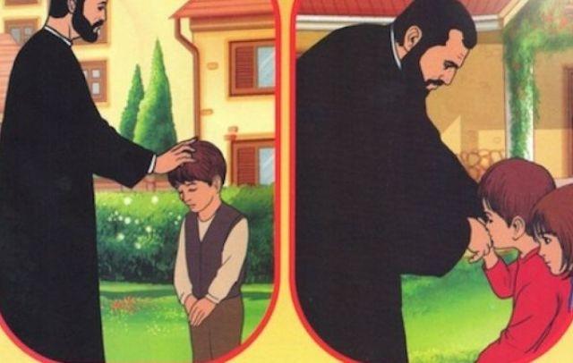 În manualul de Religie, creştin ortodoxă, de clasa a II-a a Editurii Sf. Mina, elevii afla că primul lucru pe care trebuie să îl facă în cazul în care se pierd într-un magazin, este să se roage la Dumnezeu.