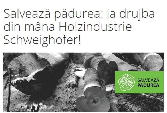 Platforma de campaigning online de-clic.ro anunță lansarea petiției Salvează pădurea: ia drujba din mâna Holzindustrie Schweighofer! În a doar o zi de la lansare, peste 6000 de cetățeni au semnat petiția ce solicită parlamentarilor din Camera Deputaților să nu cedeze amenințărilor corporațiilor din industria lemnului. Trei companii multinaționale - Holzindustrie Schweighofer, Kronospan și Egger domină piața românească la achiziția de material lemnos. În condițiile în care în România se taie peste 3 hectare de pădure la fiecare oră, responsabilitatea dispariției pădurilor din țara noastră revine deopotrivă autorităților și marilor companii.