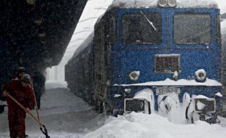 Circulaţia pe calea ferată se desfăşoară în condiţii de iarnă, iar trenurile aflate în trafic ajung la destinaţie cu întârzieri.