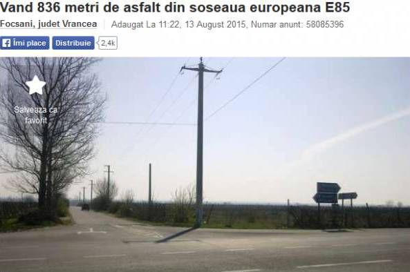 Un român a scos la vânzare, pe un site de specialitate, o bucată de aproape un kilometru din drumul național E85, din zona orașului Focșani.