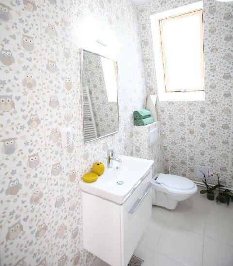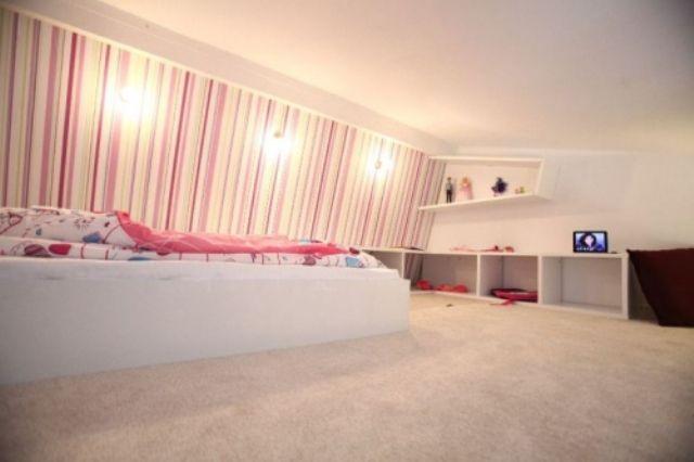 Fetele au primit o casă eficientă energetic, cu o formă mai specială, trapezoidală în secțiune. La interior 65 de metri pătrați organizați în living cu bucătărie deschisă, baie, hol, două dormitoare, al doilea având o supantă, un dormitor în pod cum ar veni.