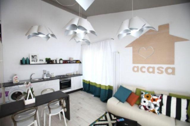 Mobilarea gândită de arhitectul Alina Vâlcu pentru living a venit să se muleze și pe înălțime astfel încât totul să fie folosit la maximum. Casa a fost orientată către lateralul curții și cu două intrări, un acces din lateral și unul din spate, acolo unde surorile au parte de intimitate. În lateral casei o pergolă mare acoperă terasa pe care au fost instalate un leagăn și un hamac.