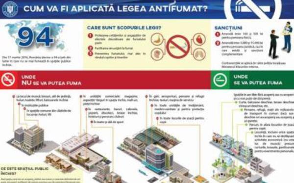 Guvernul a publicat miercuri pe site un ghid de informare privind Legea antifumat, în care sunt prezentate locurile în care se poate fuma, obligațiile administratorilor de spații publice închise, dar și sancțiunile care pot fi aplicate în cazul nerespectării legii.