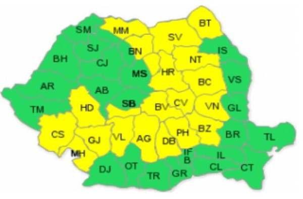 În sudul Banatului, zona deluroasă din Oltenia, Muntenia şi sudul Moldovei se vor cumula 25...30 l/mp şi pe arii restrânse 40...50 l/mp. Sursa: Realitatea.net