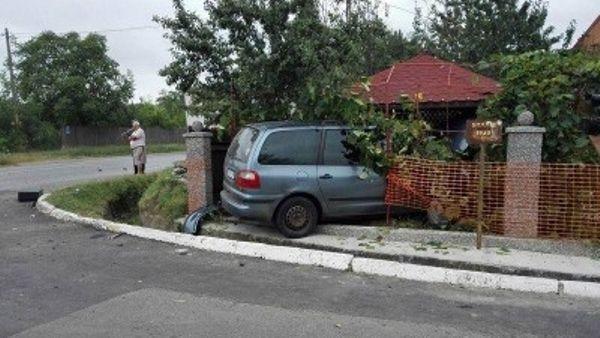 Maşina respectivă a fost lovită de un alt autoturism, proiectată peste un şanţ, după care a rupt un gard şi s-a oprit într-un foişor. Oamenii care stăteau la masă au scăpat ca prin minune, după ce au sărit de pe bănci.