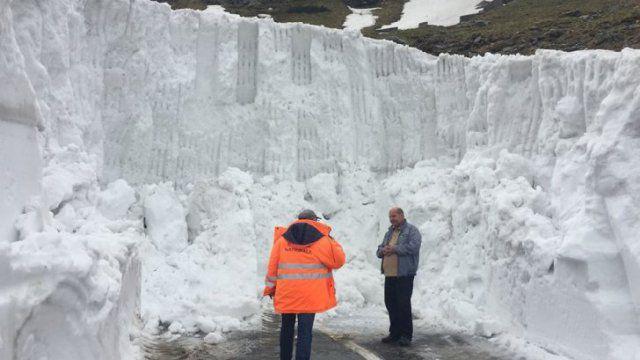 În imaginile furnizate de CNAIR se poate vedea că sunt zone unde zăpada depășește cinci metri înălțime pe Transfăgărășan.