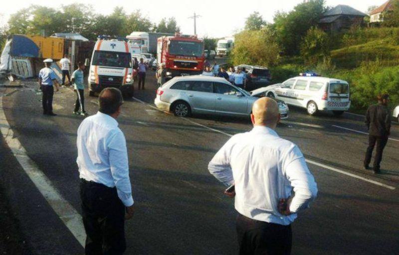 „Printre răniţi se află şi membri ai trupei DJ Project. Şoferul tirului, un bărbat de 56 de ani, a suferit o plagă tăiată la gât şi escoriaţii la nivelul feţei. În autoturismul care a fost lovit direct de tir se aflau: D.C., în vârstă de 50 de ani, H.J., în vârstă de 45 de ani şi S.M.M., în vârstă de 22 de ani. În cel de-al doilea autoturism lovit de tir se afla B.L., în vârstă de 29 de ani”, a precizat Gabriel Popescu, potrivit Agerpres.
