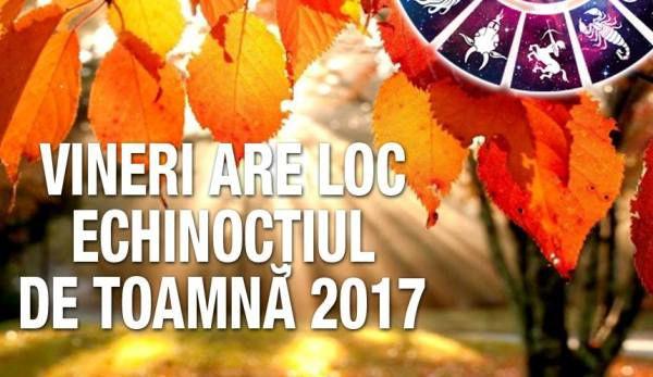 Echinocțiul de toamnă 2017 reprezintă debutul acestui anotimp din punct de vedere astronomic. Începând cu această dată, durata zilelor va continua să scadă, iar cea a nopţilor să crească, până la data de 21 decembrie, când va avea loc momentul solstiţiului de iarnă.