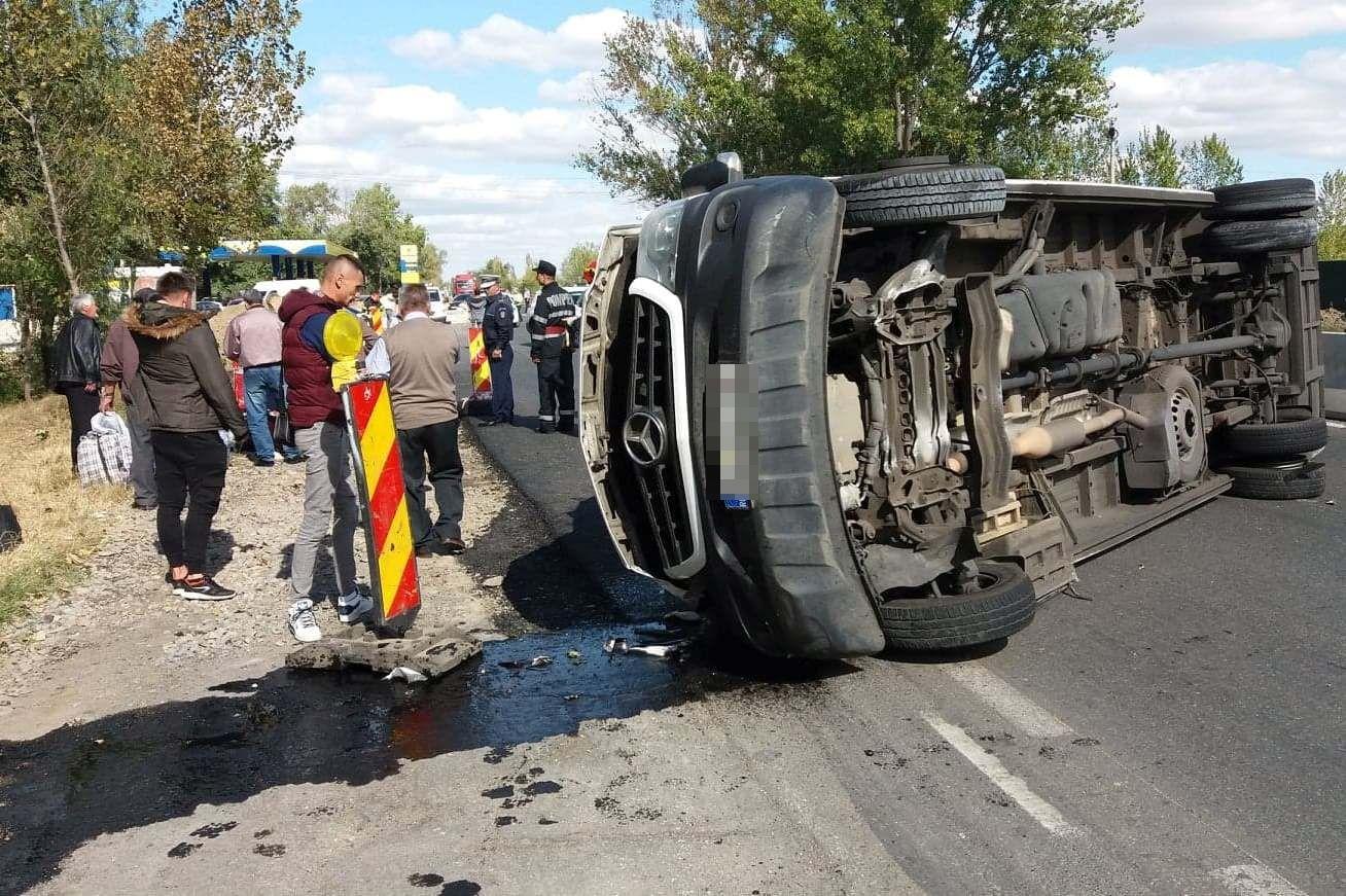 În urma coliziunii dintre autoturismul Toyota şi microbuz, acesta din urmă a ricoşat în parapetul de pe şosea, apoi s-a răsturnat pe partea dreaptă. În autovehiculul care circula pe direcţia Dorohoi - Constanţa se aflau 19 persoane, cinci pasageri fiind răniţi şi ajungând la spital.