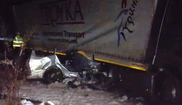 Cinci tineri şi-au pierdut viaţa duminică dimineață după ce maşina în care se aflau s-a făcut praf sub un TIR înmatriculat în Turcia.