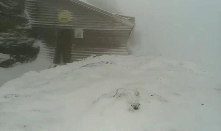 În Munții Bucegi, pe Vârful Omu, temperatura a coborât sub zero grade și a nins viscolit. În doar câteva ore, s-a așternut un strat nou de zăpadă de 3-4 centimetri.