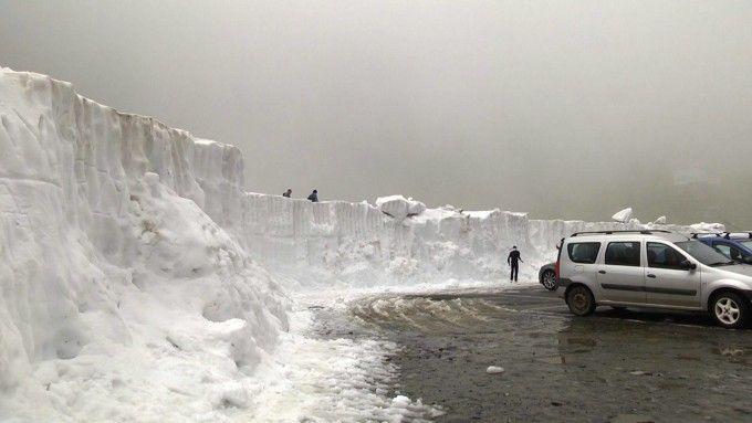Turiștii au fotografiat cum, într-o parcare, zăpada măsoară mai bine de trei metri înălțime.