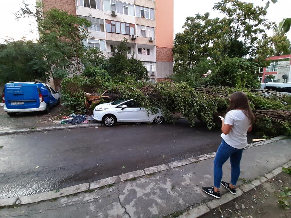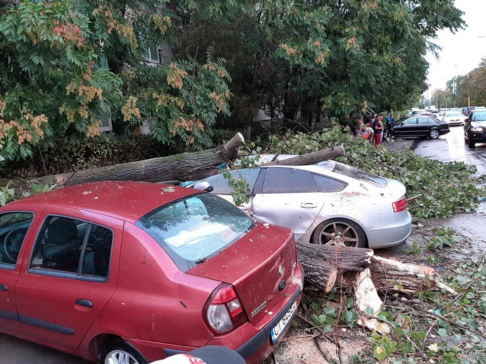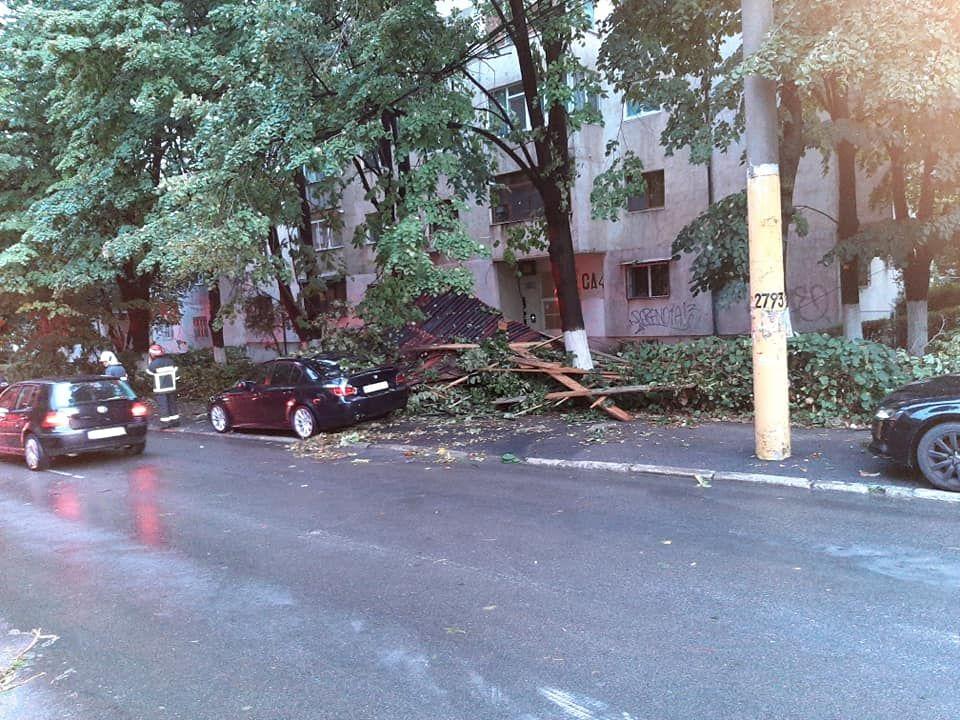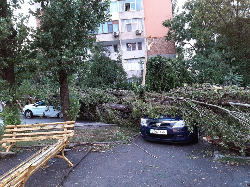 „Detasamentul port a intervenit pentru degajarea copacilor cazuti pe trei masini, un acoperis si o teava de gaz, pe str. Nehoiu, Poarta 6. (...) La Brotacei, un acoperis a cazut peste o masina. (...) Detasamentul Fripis intervine la restaurantul Beirut, unde acoperisul a fost luat de vant si aruncat pe firele electrice. (...) O schela a cazut in Mamaia", a transmis ISU, mentionand ca acestea sunt doar o parte dintre interventii.