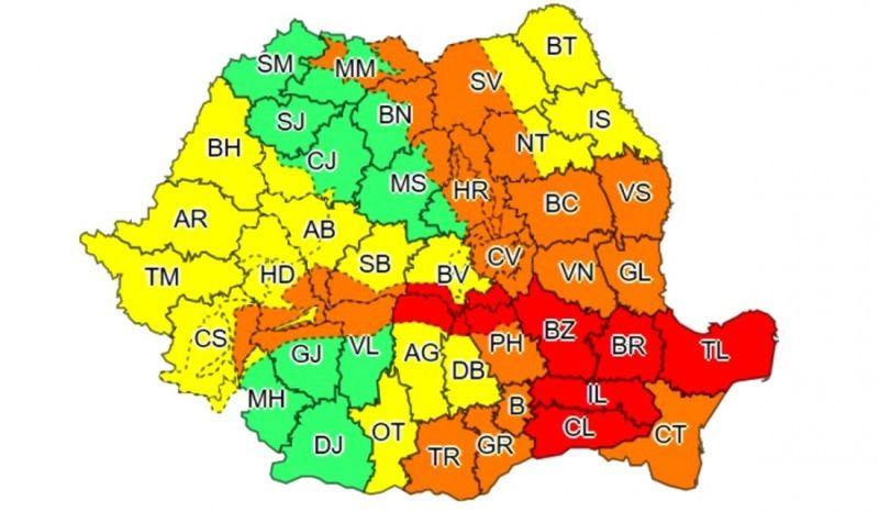 Judeţele afectate de codul roşu de viscol şi ninsori puternice sunt Prahova, Dâmboviţa, Argeş, Braşov, Buzău, Brăila, Ialomiţa, Călăraşi şi Tulcea.