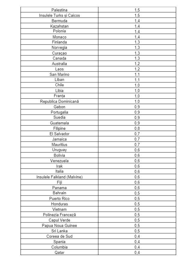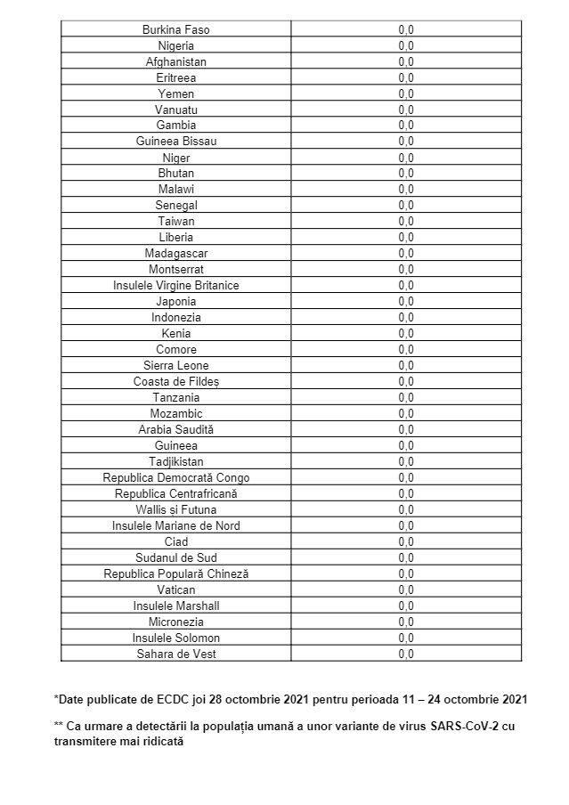 Art.1 – (1) Se aprobă Lista cu clasificarea țărilor/teritoriilor în funcție de rata de incidență cumulată, prevăzută în anexa care face parte integrantă din prezenta hotărâre, în vederea stabilirii persoanelor care sosesc în România din acestea și cu privire la care se instituie măsura carantinei.