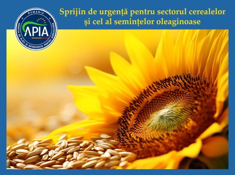 Agenția de Plăți și Intervenție pentru Agricultură (APIA) informează că până la data de 26 octombrie 2023 inclusiv, primește cereri de acordare a sprijinului de urgență pentru sectorul cerealelor și al semințelor oleaginoase.