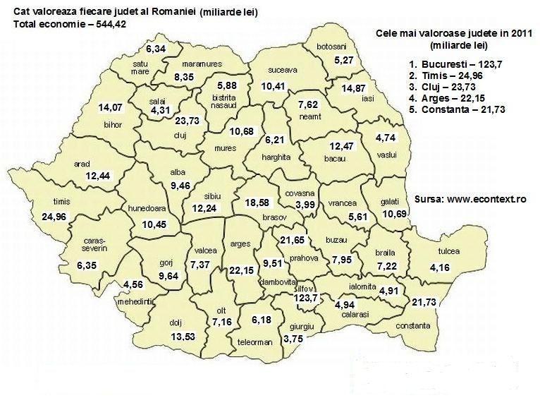 Iata clasamentul judetelor! Economia fiecarui judet in 2011. Valoarea in miliarde lei: