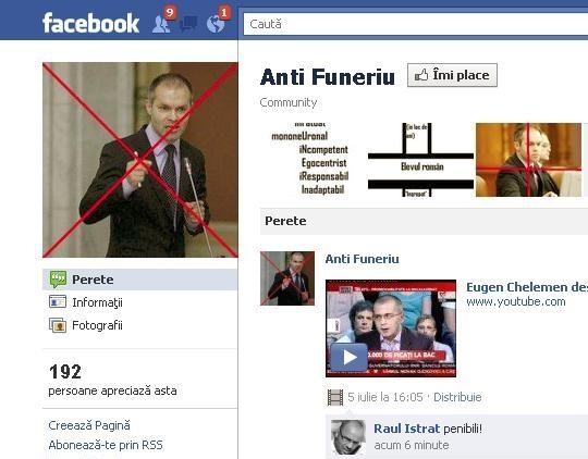 Elevii care au picat bacalaureatul au găsit o metodă prin care să se răzbune pe ministrul Educaţiei, Daniel Funeriu. Pe Facebook au fost create comunităţi şi evenimente în care ţinta este ministrul. "Să-l dăm jos pe Funeriu", "Demisia, Daniel Funeriu!" sunt doar câteva titluri virtuale date de către elevi după ce şi-au văzut notele de la bacalaureat.
