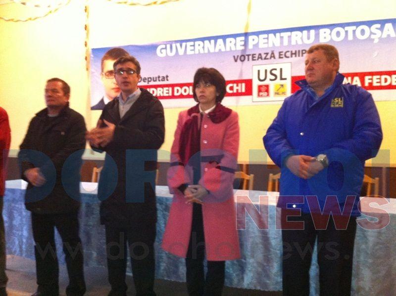 „Acum trebuie să vorbim despre viitor, despre noi, despre ce vom face cu puterea pe care ne-o vor da pe 9 decembrie. Cu această putere vom face aceste localități mai puternice, deoarece o localitate puternică înseamnă o localitate în care oamenii care muncesc sunt răsplătiți corect pentru munca lor, o localitate în care oamenii își cresc copii nu îi trimit în alte țări. Pe de altă parte votul botoșănenilor din 9 decembrie trebuie să pună capăt conflictelor politice și starii de haos create de PDL care acum se ascunde în spatele ARD, la fel cum au făcut și la alegerile locale când s-au ascuns după fusta Mișcării pentru Botoșani. Acest lucru arată clar că celor de la PDL le este frică să răspundă în fața electoratului, se tem și se rușinează. Noi candidații USL dorim să reprezentăm botoșănenii în Parlamentul României pentru a reconstrui și a reprezenta interesele dumneavoastră, „Să facem schimbarea până la capăt!”, a spus candidatul la senat, Doina Federovici.