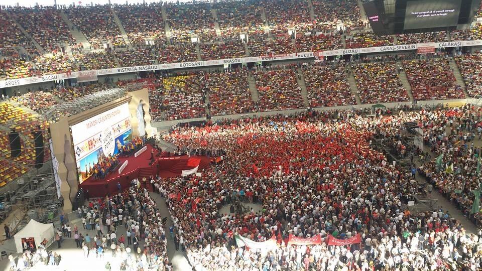 Arena Națională din București a fost gazda celui mai mare miting politic organizat de un partid în ultimii 25 de ani. Peste 70.000 de români, personalități din lumea sportului, muzică, din zona cultural-artistică, precum și reprezentanți ai cetățenilor de pe întreg cuprinsul țării au fost alături de Victor Ponta pentru a-l susține în campania pentru alegerile prezindențiale din noiembrie.