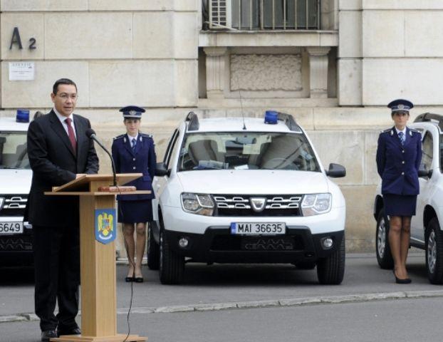 Premierul Victor Ponta l-a felicitat miercuri pe ministrul Afacerilor Interne, Gabriel Oprea, pentru faptul că a reușit achiziționarea de autoturisme Duster pentru înnoirea parcului auto la prețul de 11.000 de euro, spre deosebire de perioada în care ministerul era condus de Vasile Blaga, când s-au cumpărat Loganuri cu 70.000 de euro.