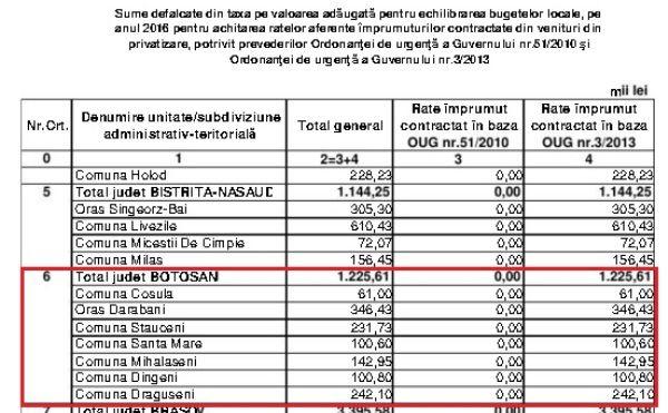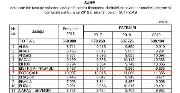 Totodată, reprezentanta PSD în Senatul României a mai spus că, în 2016, județul Botoșani va mai primi încă 64 milioane de lei de la bugetul de stat pentru echilibrarea bugetelor locale. Județul Botoșani ocupă locul șase pe țară în privința sumelor defalcate din TVA pentru echilibrarea bugetelor locale.