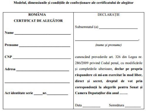Românii îşi pot exercita dreptul de vot prin corespondenţă, la alegererile parlamentare din acest an, după ce legea votului prin corespondenţă a fost promulgată, în toamna anului trecut. Guvernul a elaborat un proiect de act normativ prin care stabileşte, printre altele, cum va arăta certificatul de alegător.