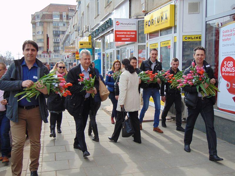 Organizatia municipala a partidului Miscarea Populara Botosani, impreuna cu presedintele Filialei Botosani, domnul Mihai Tabuleac, candidatul Miscarii Populare la primaria municipiului Botosani au marcat sosirea primăverii oferind flori, doamnelor si domnisoarelor pe Pietonalul Unirii si Bulevardul Mihai Eminescu.