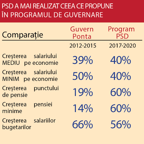 Acesta a arătat că în cei trei ani de guvernare PSD din perioada 2012-2015, anumiți indicatori precum salariul minim sau nivelul salariilor bugetarilor au crescut mai mult decât țintele propuse pentru următorii patru ani.