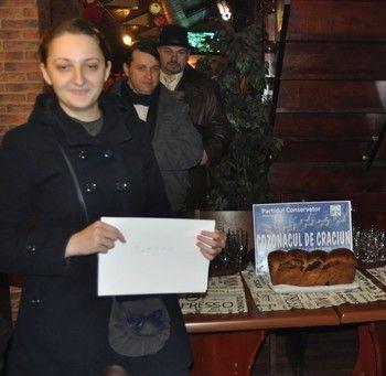 Jurnalista Claudia Gurzu de la Tele M a castigat, joi, premiul "Cozonacul de Craciun", oferit de organizatia din Botosani a Partidului Conservator. Ea a intrat in posesia premiului in urma unei trageri la sorti la care au participat 11 jurnalisti, scrie botosaninews.ro.