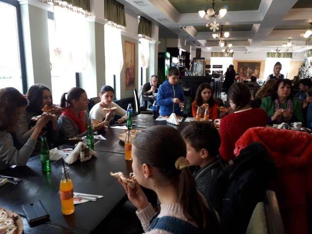 După plimbarea recreativă, copiii au ajuns la restaurant, unde au fost serviți cu mult-așteptata pizza, sucuri, ceai, dar și desert. Bunătățile servite aici, decorațiunile de Crăciun, muzica, le-au prilejuit copiilor o ocazie minunată de a petrece în mod plăcut câteva ore din timpul lor liber, de a lega noi prietenii. Totodată, cele 30 de cadouri pe care social-democratele le-au oferit musafirilor la sfârșitul zilei, au întregit atmosfera de sărbătoare.