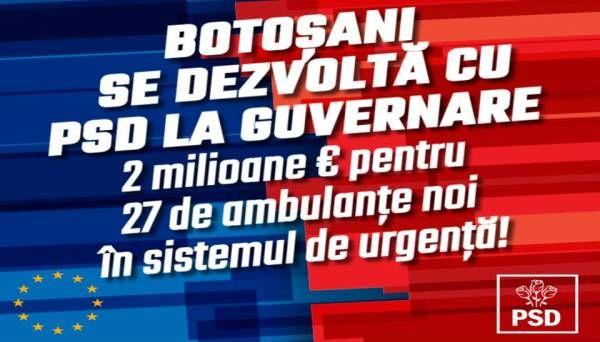 Vicepreședintele Consiliului Județean Botoșani, social-democratul Dorin Birta a anunțat astăzi că pentru anul 2019 Guvernul PSD a alocat fonduri de la bugetul de stat în valoare de 1,5 milioane euro pentru dotarea cu echipamente medicale noi a Spitalului Județean de Urgență Mavromati.