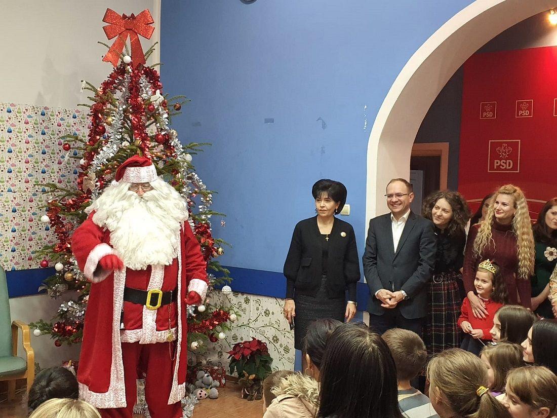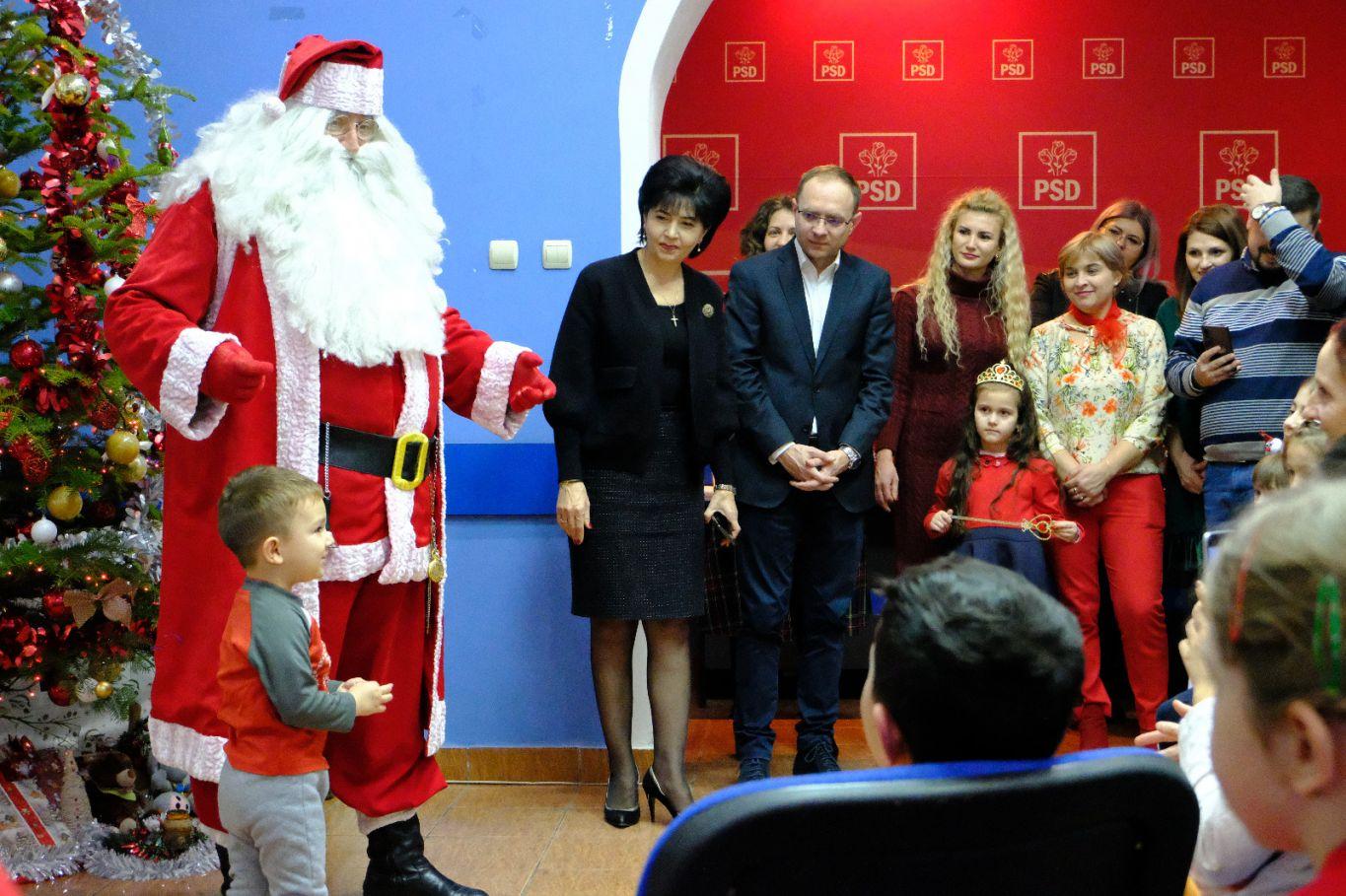 Sediul PSD a răsunat de râsetele zecilor de copii care au avut ocazia să stea de vorbă cu Moș Crăciun și să primească, pe lângă cadourile pregătite special pentru ei, și câte o îmbrățișare din partea celui mai îndrăgit moș din toată lumea.