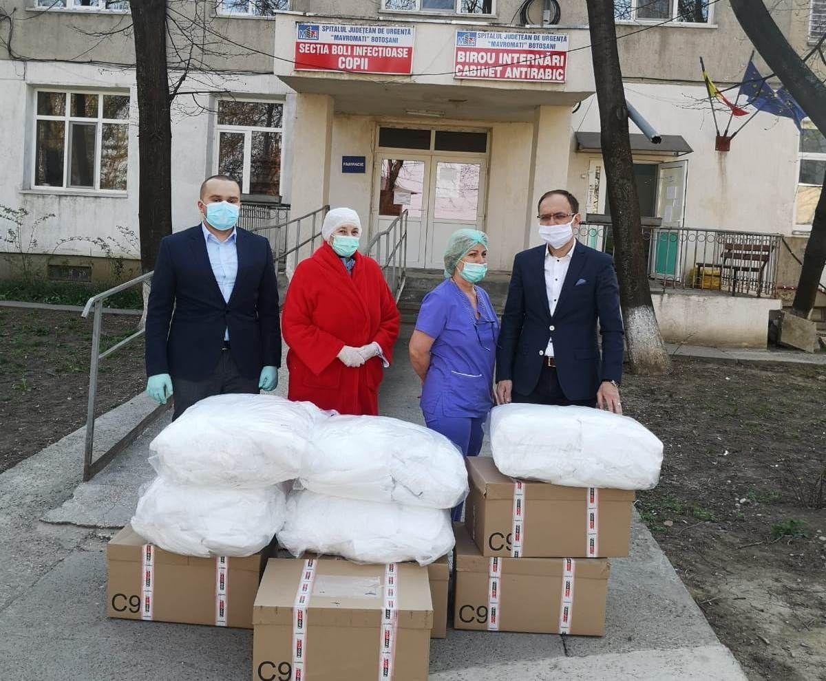 Cadrele medicale de la secțiile spitalelor din județul Botoșani care se află în linia întâi în lupta cu pandemia de COVID-19 au primit combinezoane și viziere de înaltă protecție în urma unei donații în valoare de 52.500 de lei.