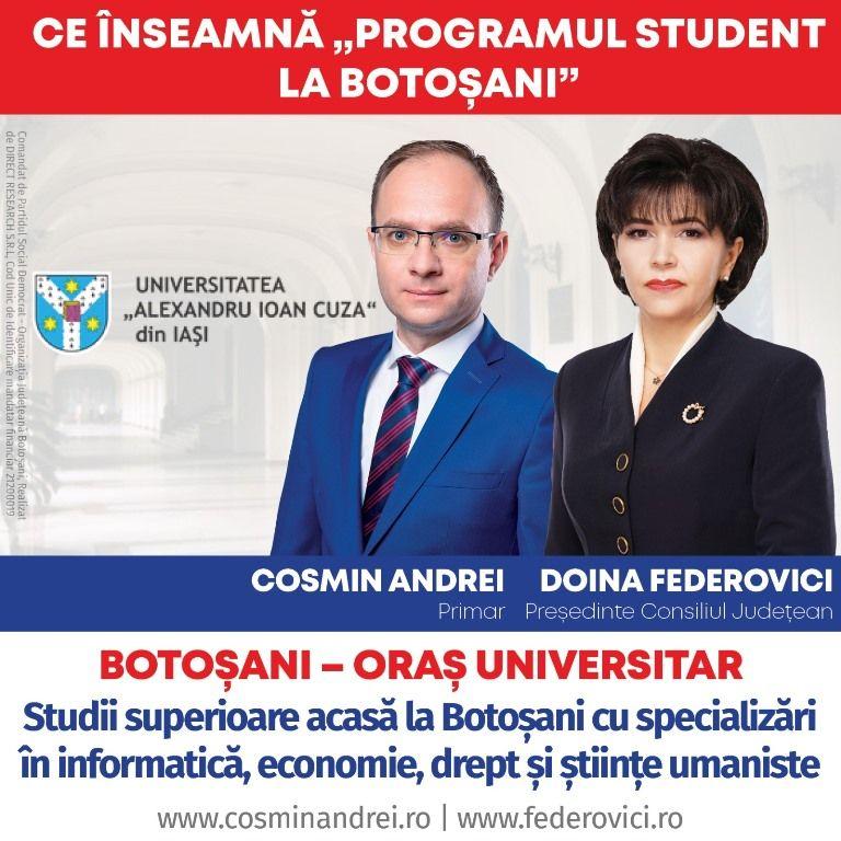 În urmă cu două săptămâni senatorul PSD Doina Federovici, candidat la Președinția Consiliului Județean Botoșani și viceprimarul Cosmin Andrei, candidatul PSD pentru funcția de primar a municipiului Botoșani au fost la Iași pentru a discuta cu domnul rector Tudorel Toader deschiderea unei extensii a Universității Alexandru Ioan Cuza la Botoșani. În urma aceste vizite a început o corespondență la nivelul Primăriei municipiului Botoșani cu viceprimarul Cosmin Andrei, precum și cu conducerea Consiliului Județean.