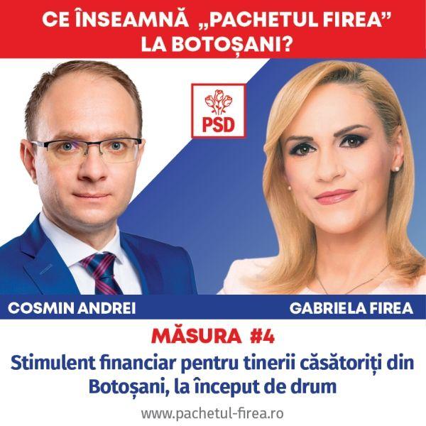 Candidații PSD la Consiliul Județean și Primăria Municipiului Botoșani au prevăzut în Programul social Gabriela Firea pentru Botoșani stimulente financiare pentru tinerii căsătoriți și pentru fiecare nou născut din municipiul și județul Botoșani.