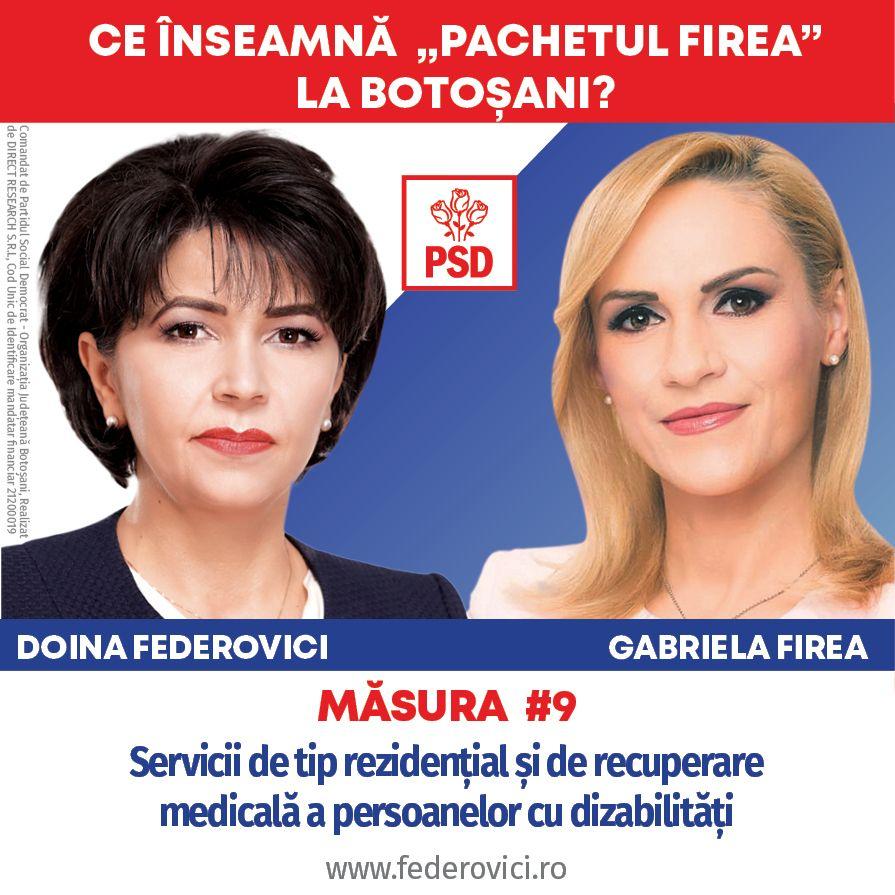 „Așa cum am avut grijă de domeniul asistenței sociale și am reușit majorarea salariilor din acest segment, ca parlamentar al județului Botoșani, la fel voi proceda și la Consiliul Județean pentru persoanele cu dizabilități. Am elaborat deja proiectul pentru creșterea numărului de servicii de tip rezidențial și de recuperare medicală a persoanelor cu dizabilități, precum și pentru dotarea unităților de asistență medico-sociale”, a subliniat Doina Federovici.