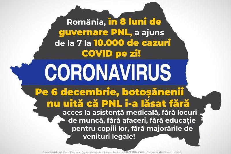 „Din păcate pentru botoșăneni și pentru toți românii, Guvernul Orban nu a luat măsuri coerente pentru a stăvili pandemia, nu a testat corespunzător și suficient de mult, nu a pregătit sistemul medical și nici sistemul educațional. Tot ce au făcut, toate resursele disponibile le-au alocat doar pregătirii alegerilor locale și parlamentare. Liberalii își asumă deliberat această contradicției pentru că scopul lor este de a-i speria pe alegătorii mai vulnerabili în fața pandemiei. Ei știu că acești alegători vor vota împotriva lor pentru că Guvernul PNL le-a pus viața și sănătatea în pericol prin modul dezastruos în care au gestionat pandemia și economia”, subliniat Doina Federovici.