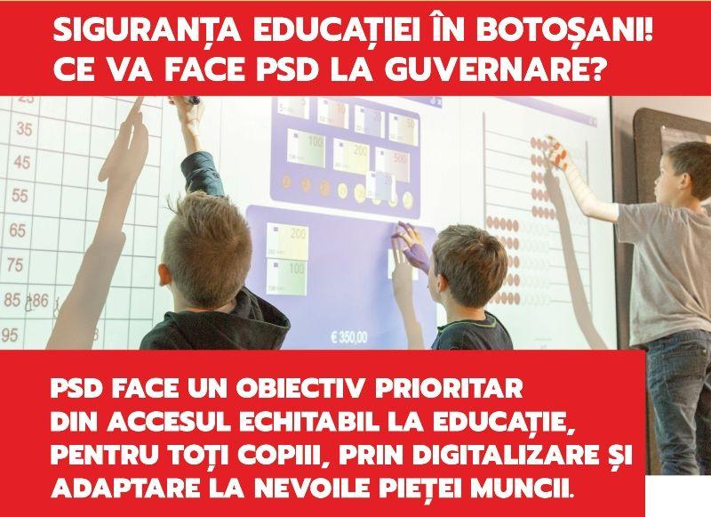 Programul de guvernare al PSD face un obiectiv prioritar din accesul echitabil la educație, pentru toți copiii, prin digitalizare și adaptare la nevoile pieței muncii.